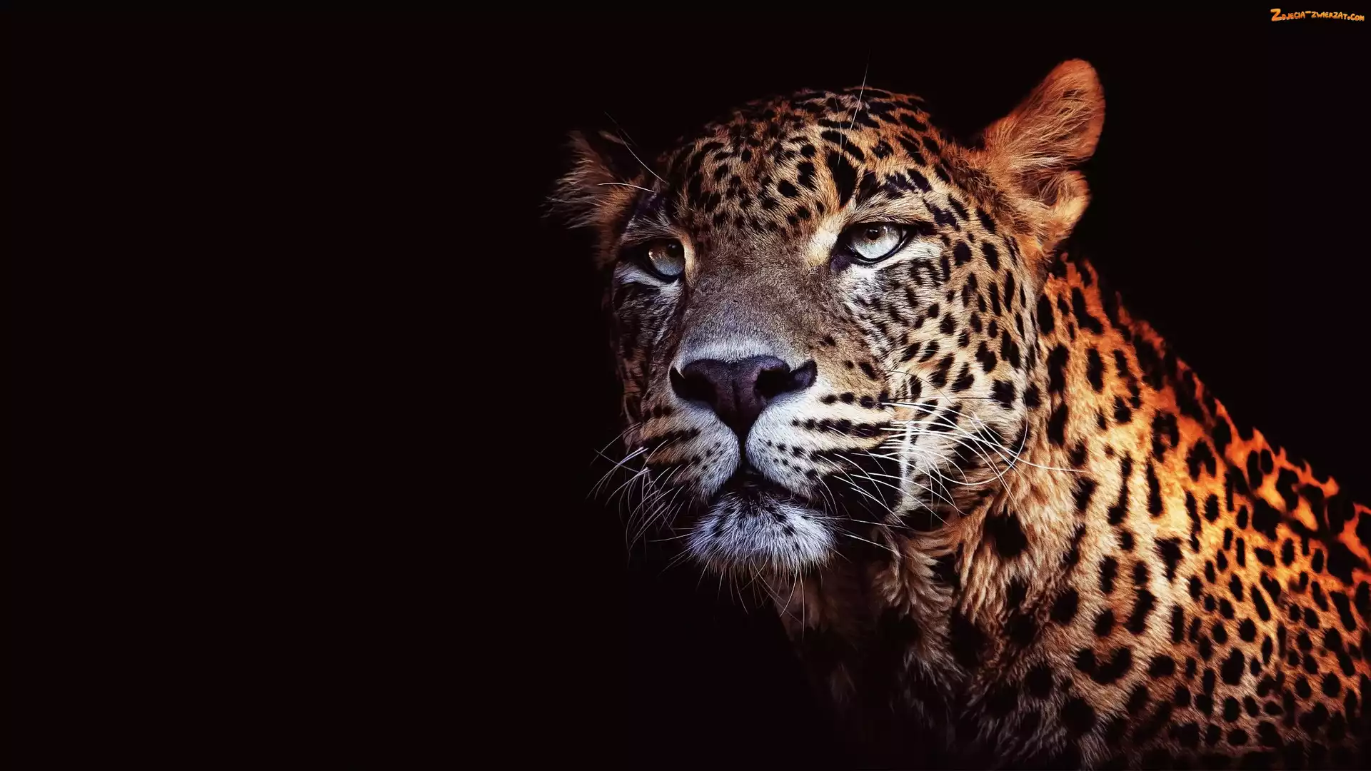Zdjęcie: Zbliżenie, Czarne tło, Lampart, Spojrzenie