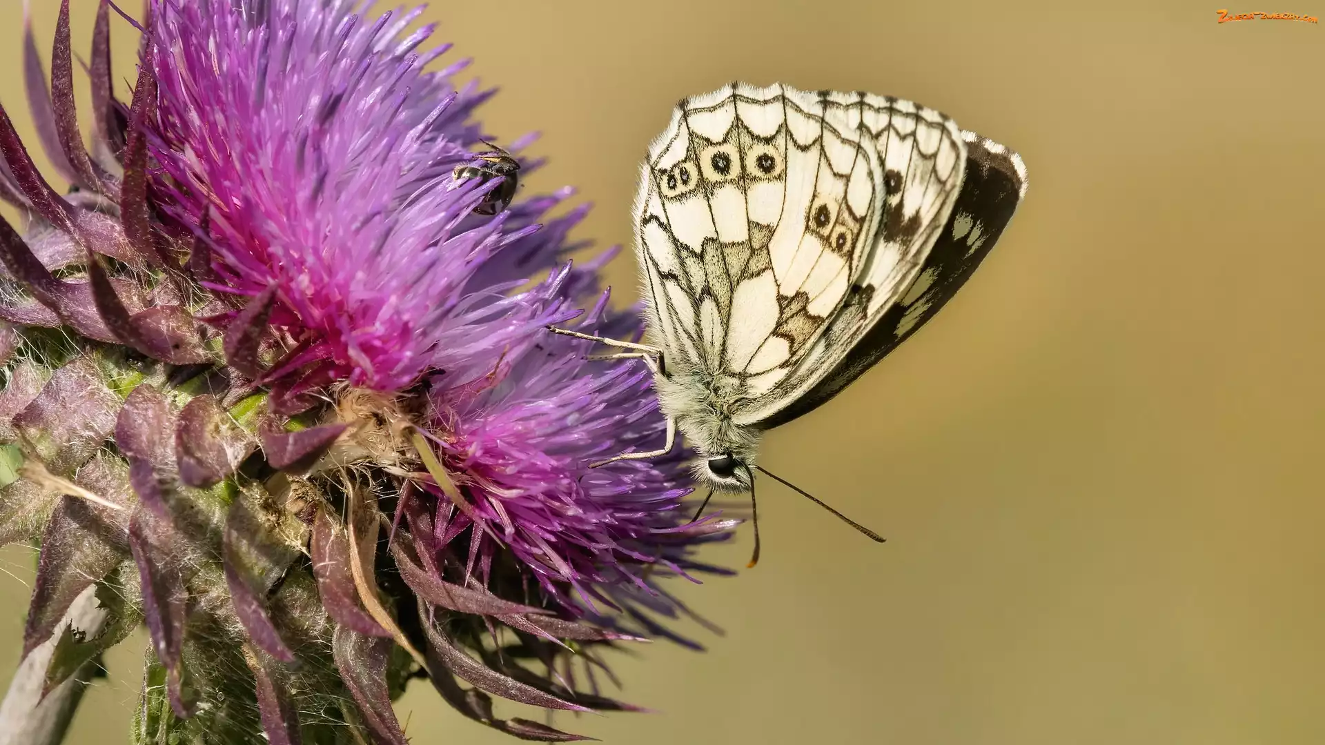 Zbliżenie, Oset, Polowiec szachownica, Motyl, Roślina