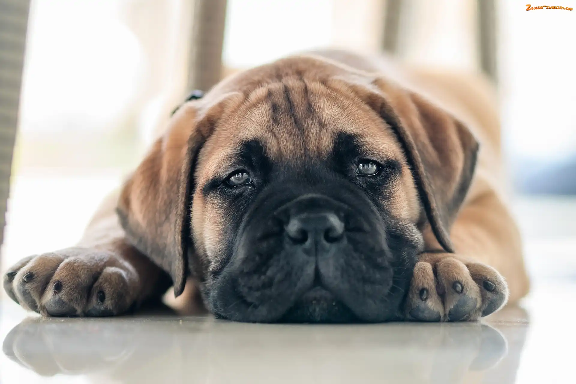 Zdjęcie: Zbliżenie, Spojrzenie, Szczeniak, Pies, Bulmastiff