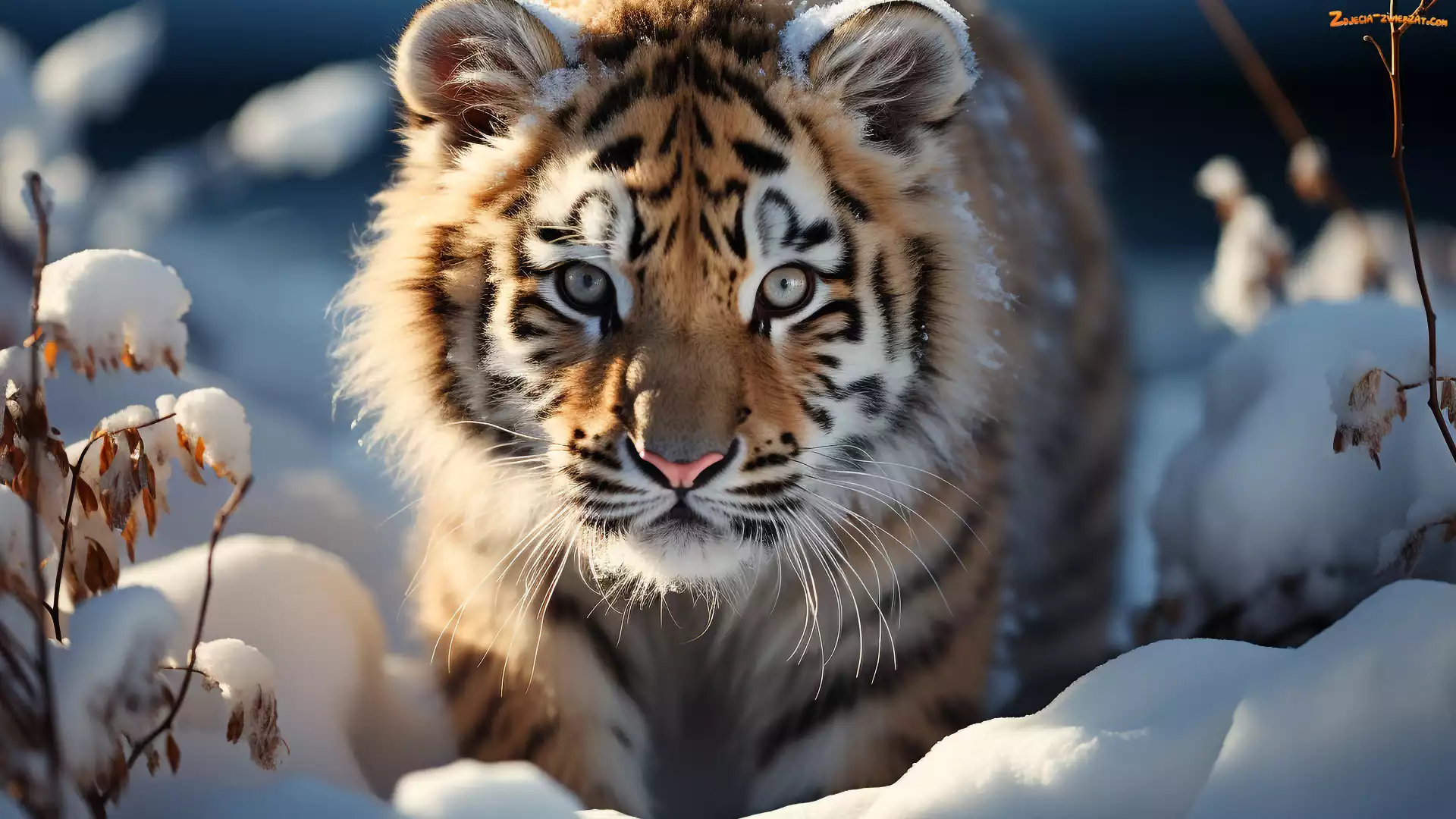 Zdjęcie: Tygrys, Głowa, Zima, Zbliżenie