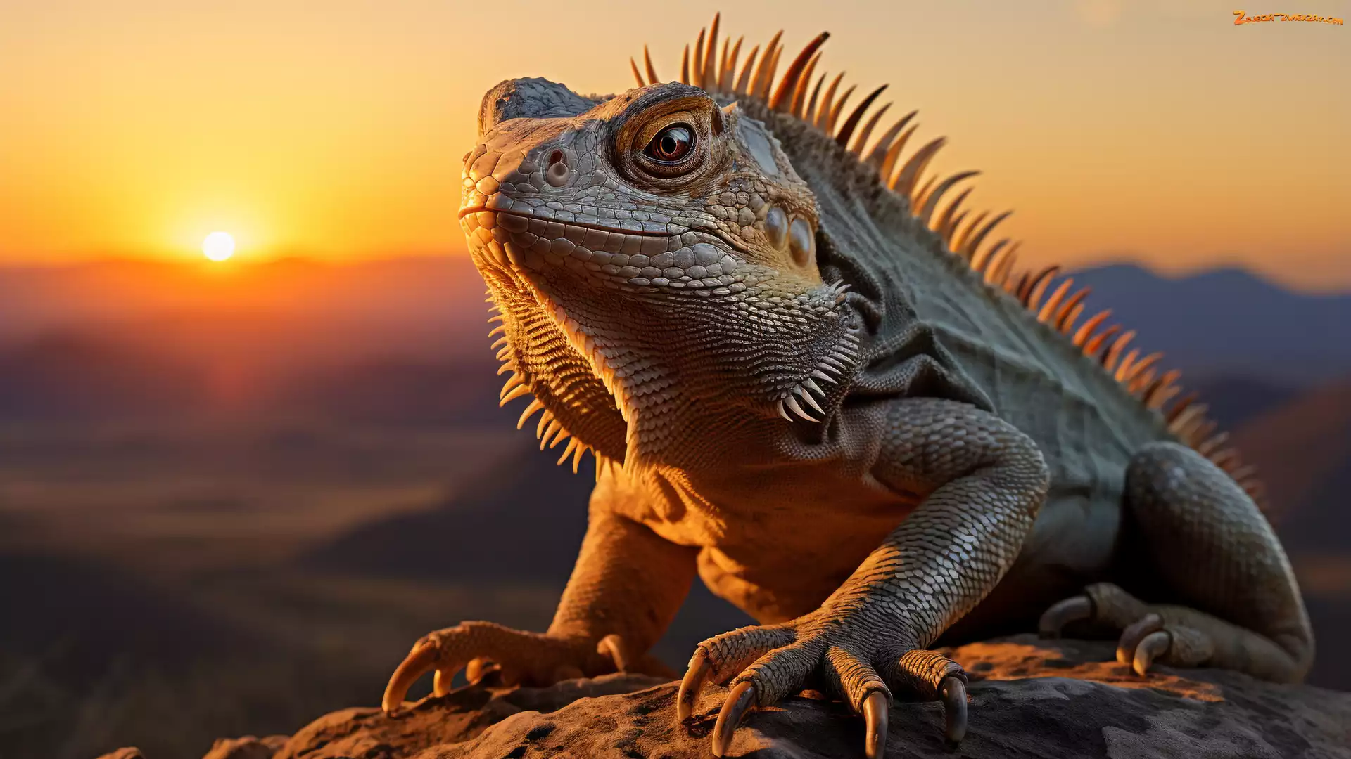 Zdjęcie: Zachód słońca, Legwan, Zbliżenie