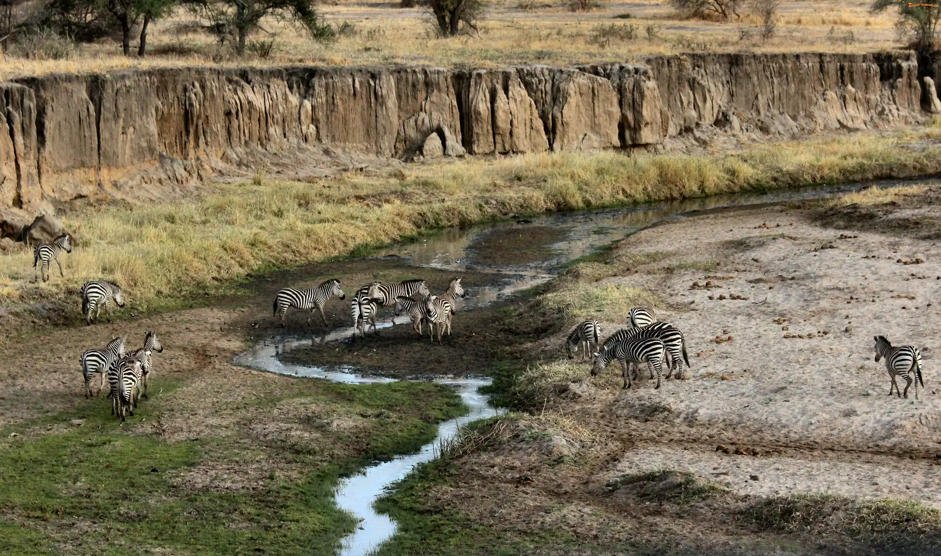 Zdjęcie: Rzeka, Zebry, Sawanna