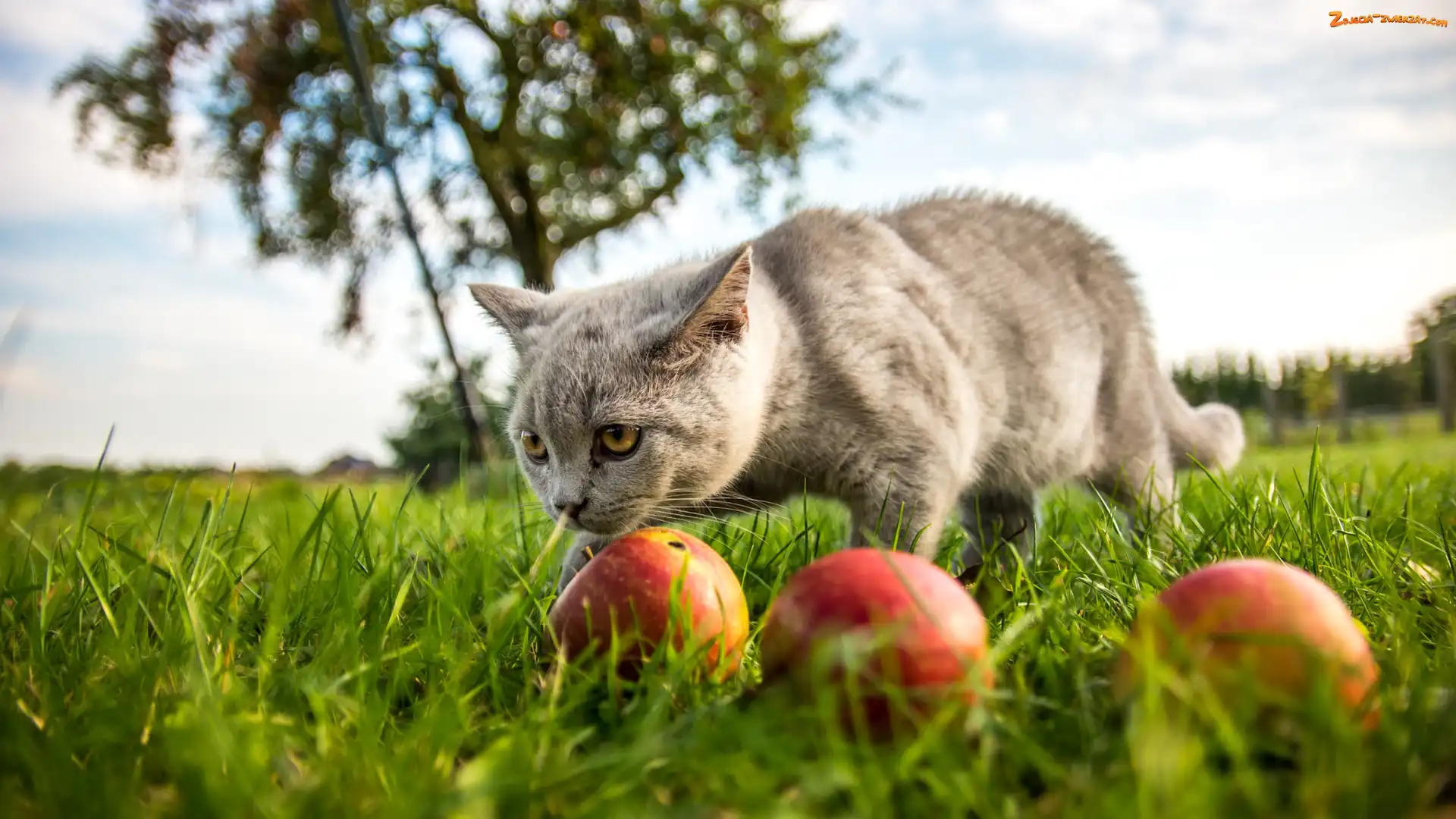 Zdjęcie: Zielona, Jabłka, Kot, Trawa