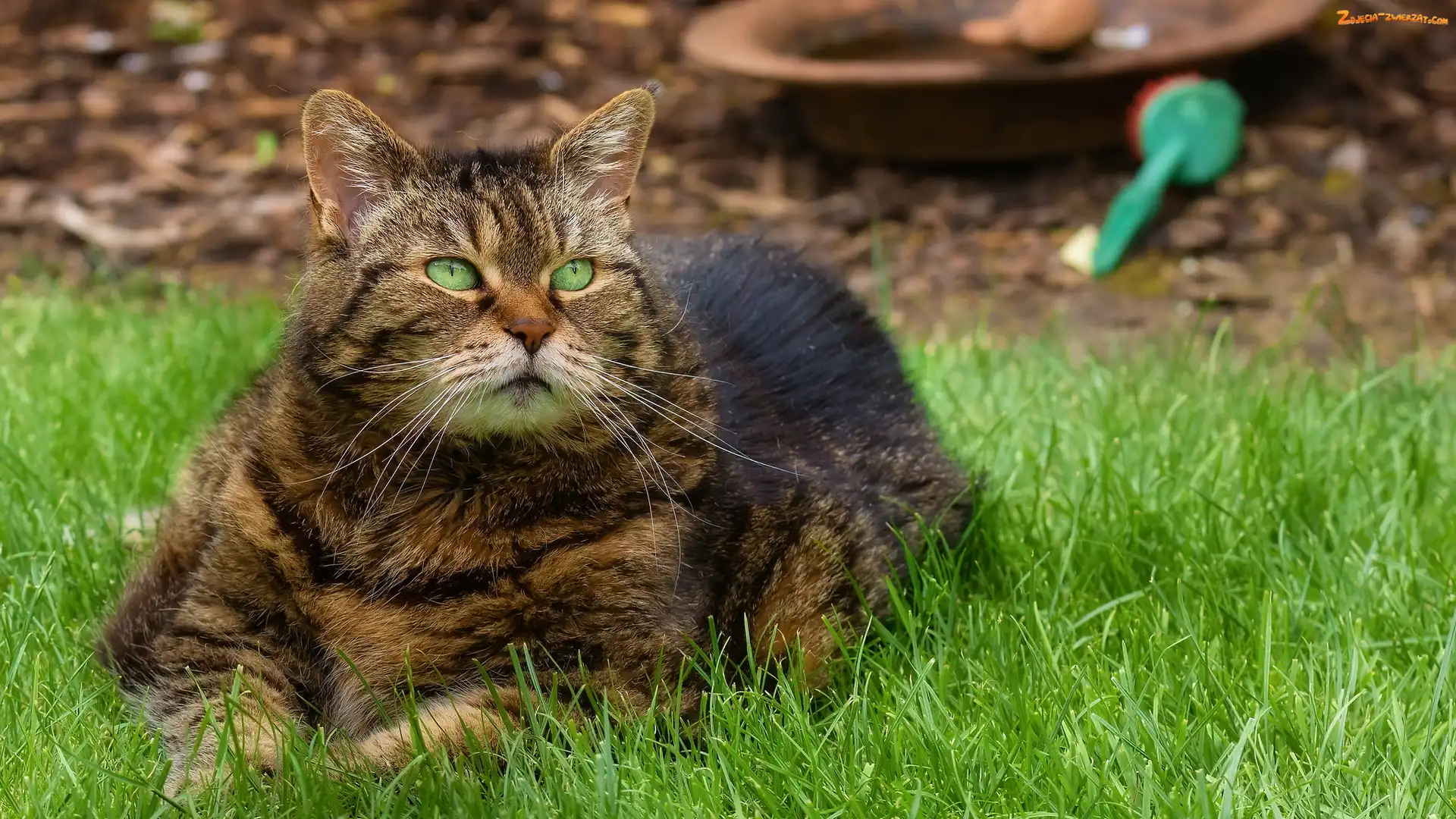 Zdjęcie: Zielonooki, Trawa, Zapatrzony, Kot