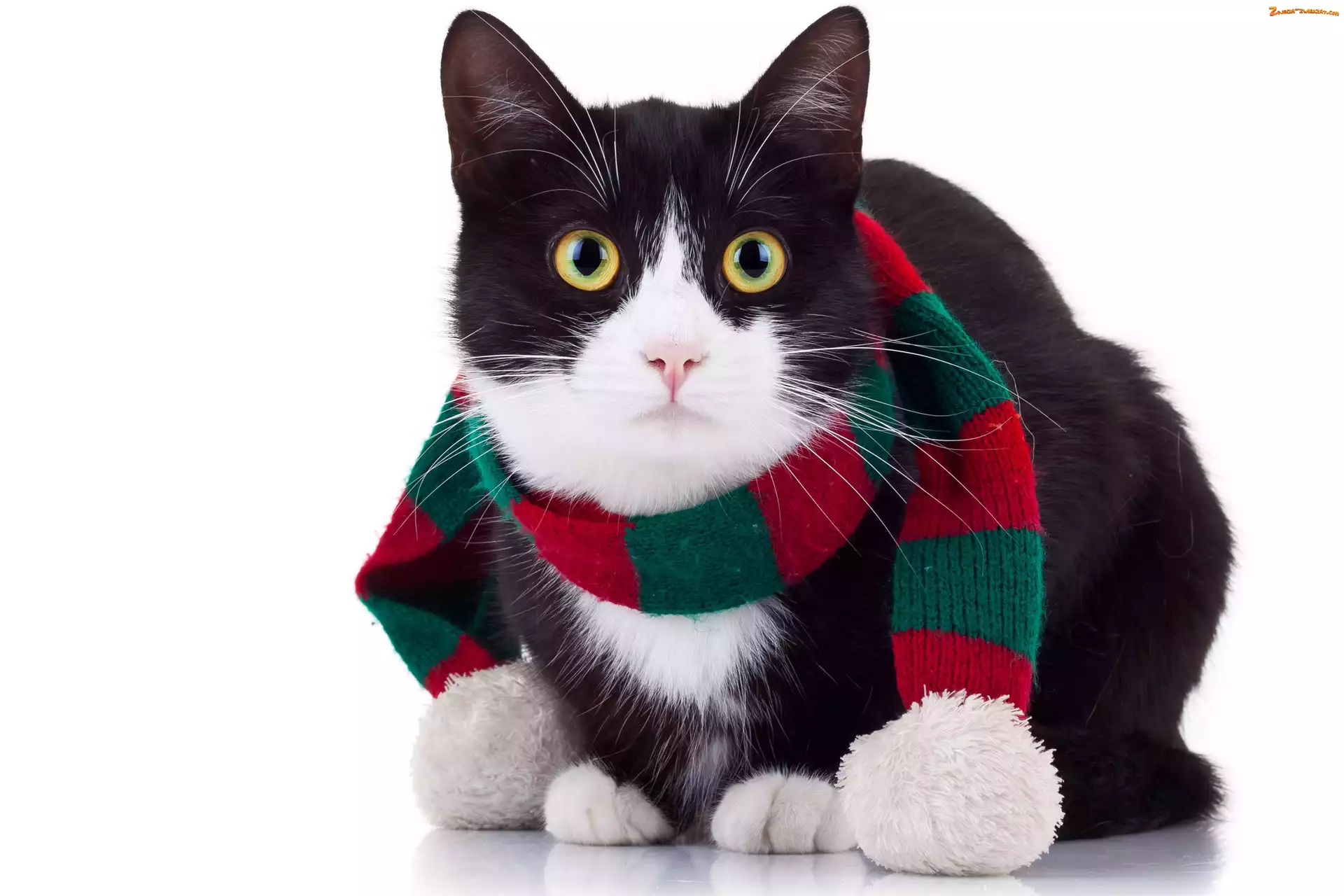 Zdjęcie: Zima, Szalik, Biały, Czarno, Kot