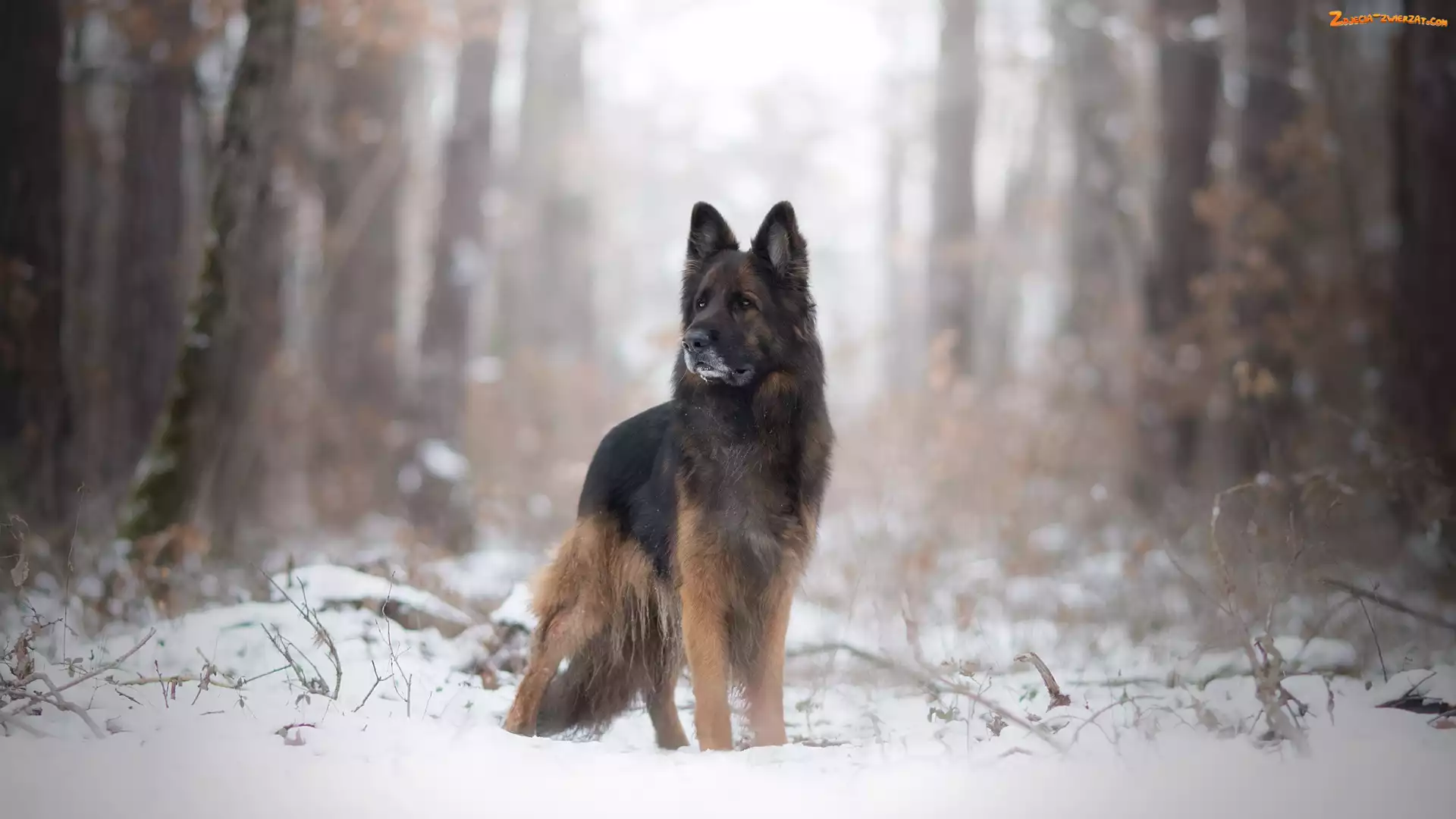 Zdjęcie: Zima, Owczarek niemiecki długowłosy, Las