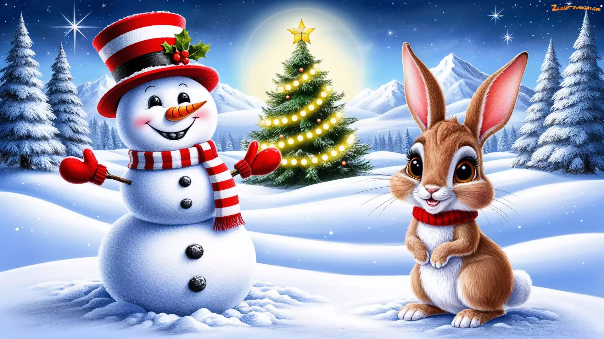 Zdjęcie: Gwiazda, Królik, Szal, Kapelusz, Góry, Rękawice, Boże Narodzenie, Zima, Śnieg, Drzewa, Choinka, Światełka, Bałwan |