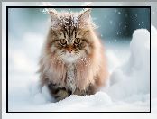 Zdjęcie: Kot, Zima, Grafika AI, Śnieg