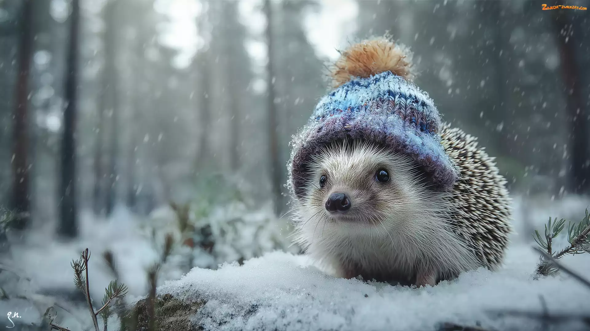 Zdjęcie: Jeż, Czapka, Grafika, Zima