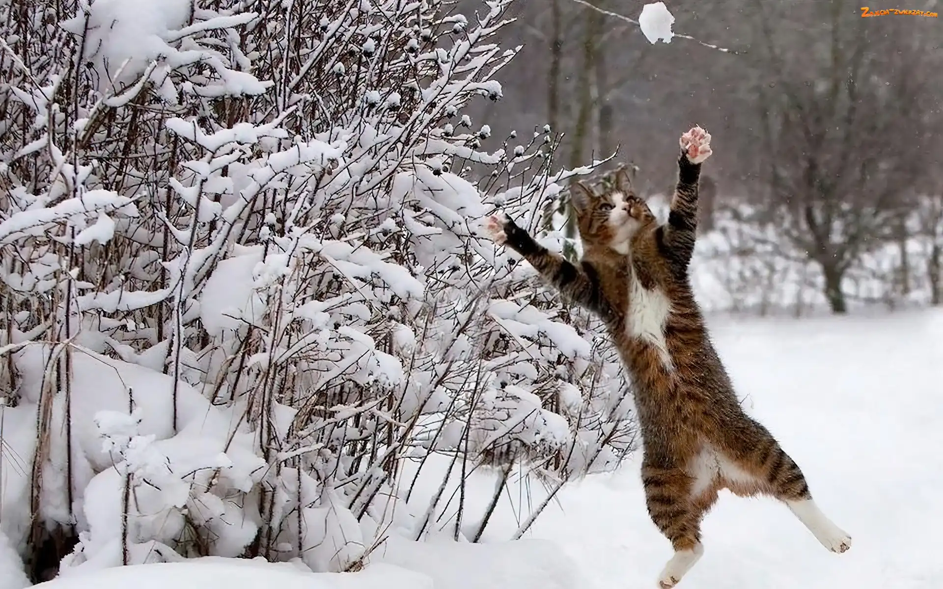 Zdjęcie: Śnieg, Kot, Zima, Skaczący