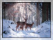 Zdjęcie: Przebijające światło, Las, Zima, Śnieg, Sarny, Jeleń