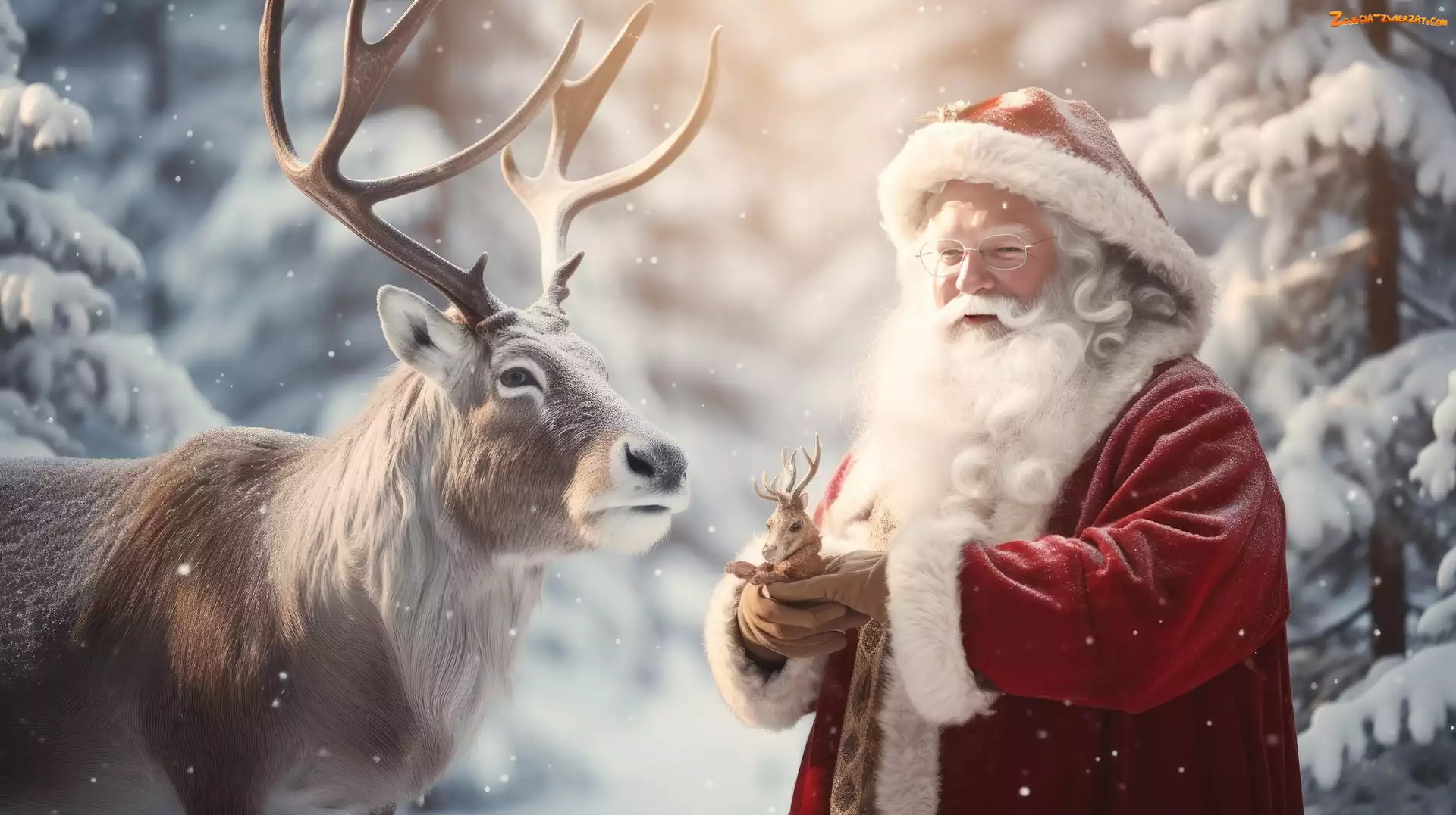 Zdjęcie: Mikołaj, Renifer, Grafika, Zima