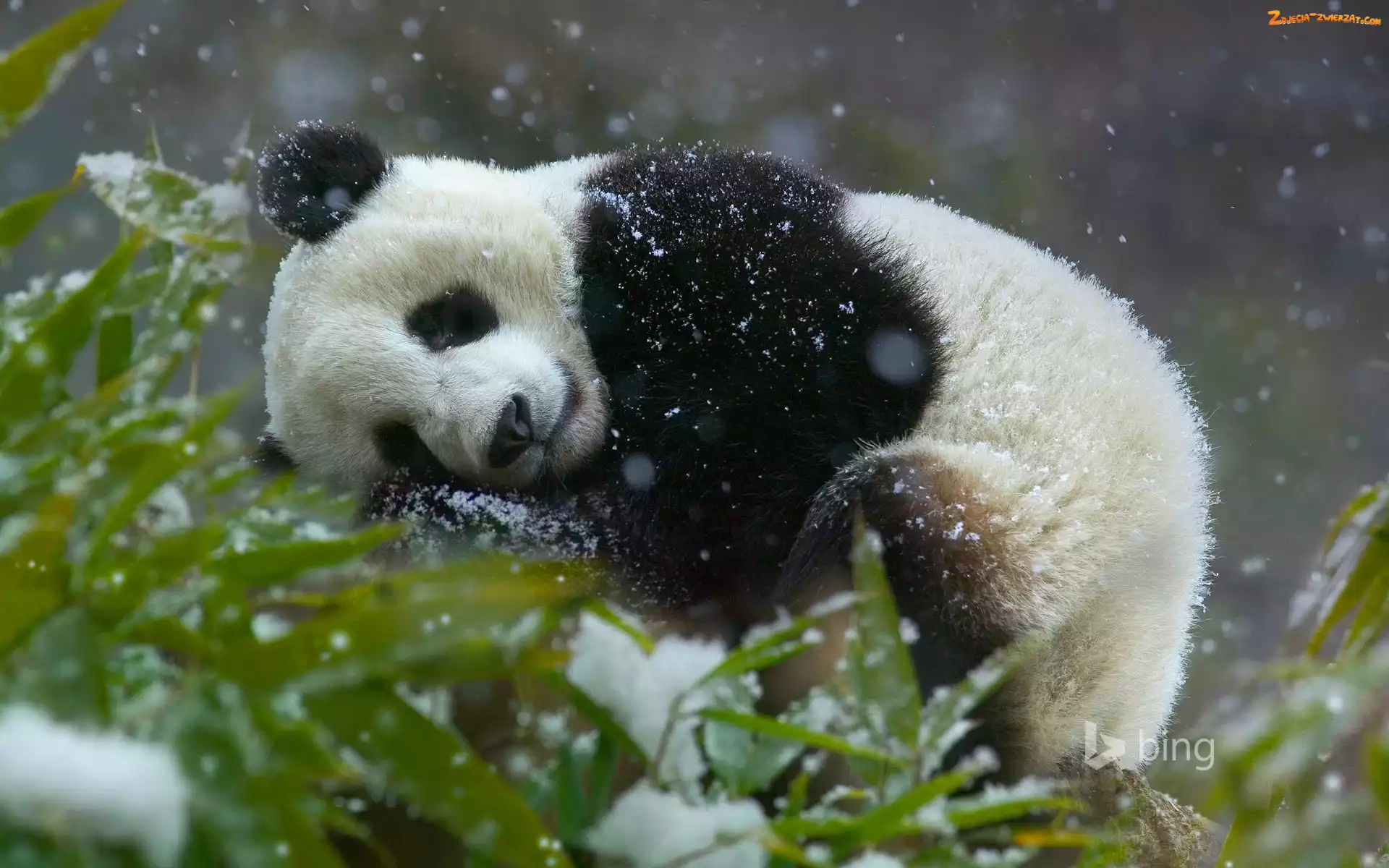 Zdjęcie: Zima, Śnieg, Panda, Miś, Drzewo