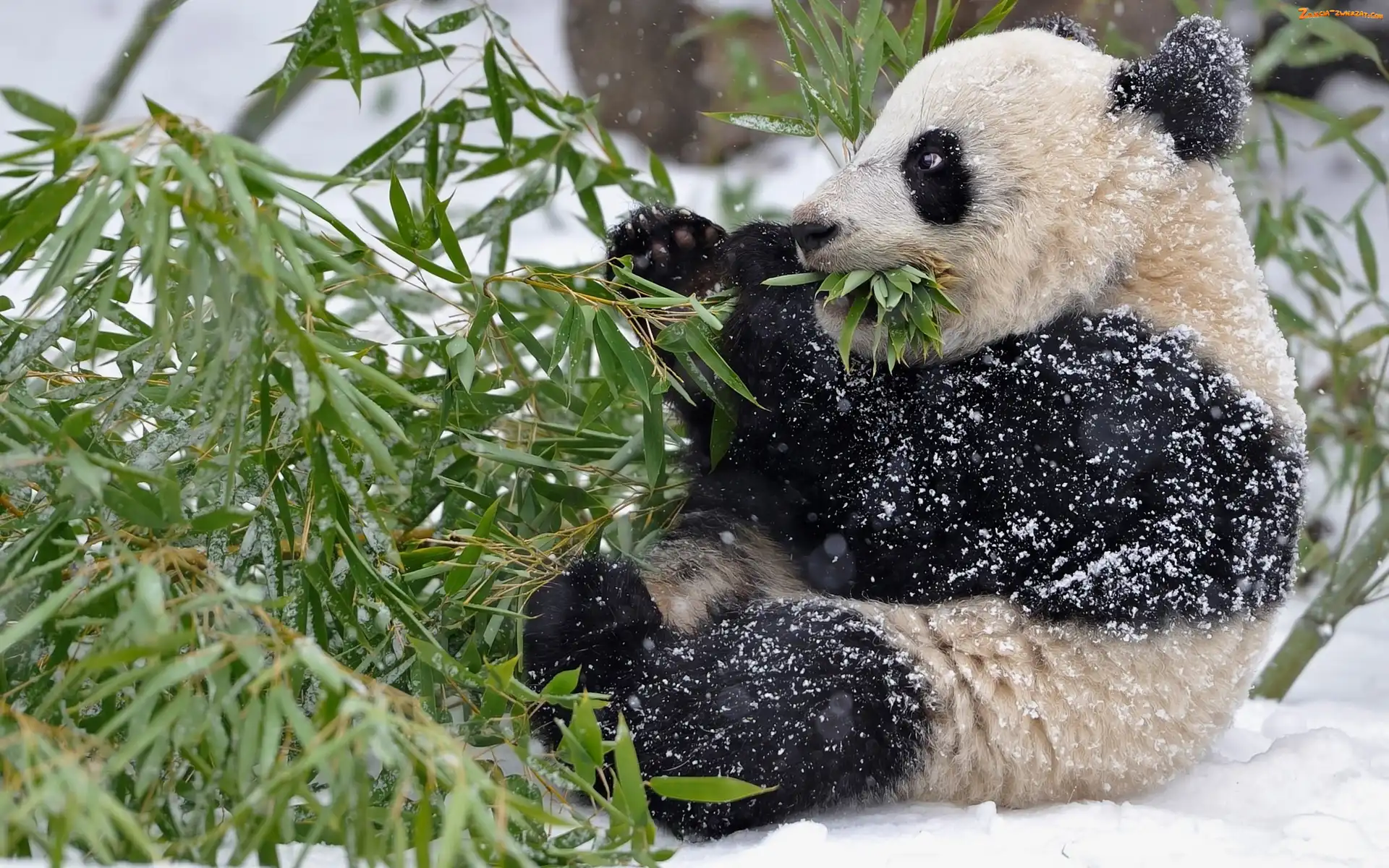 Zima, Pożywienie, Panda, Miś, Gałąz