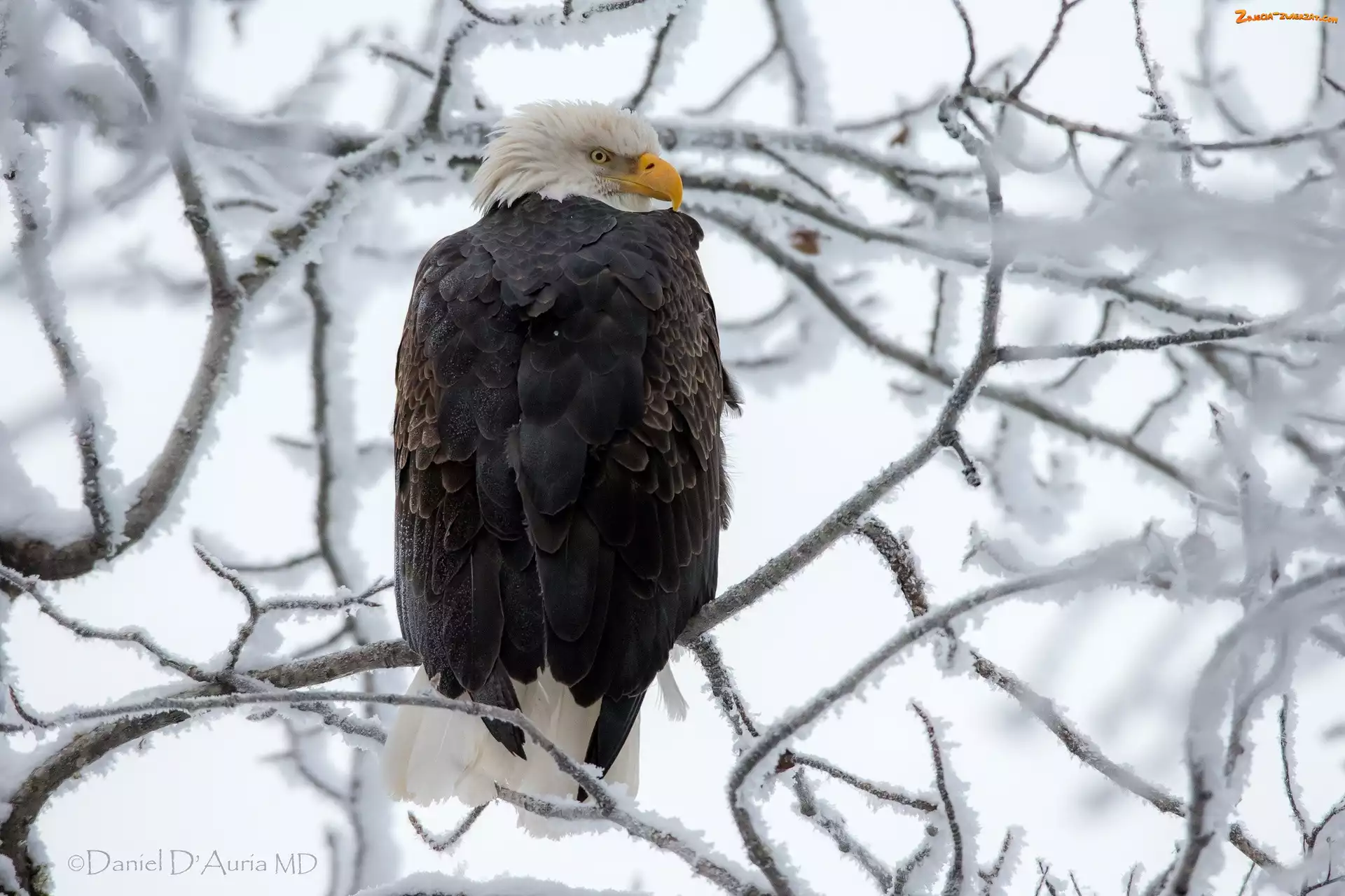 Zdjęcie: Śnieg, Gałęzie, Bielik amerykański