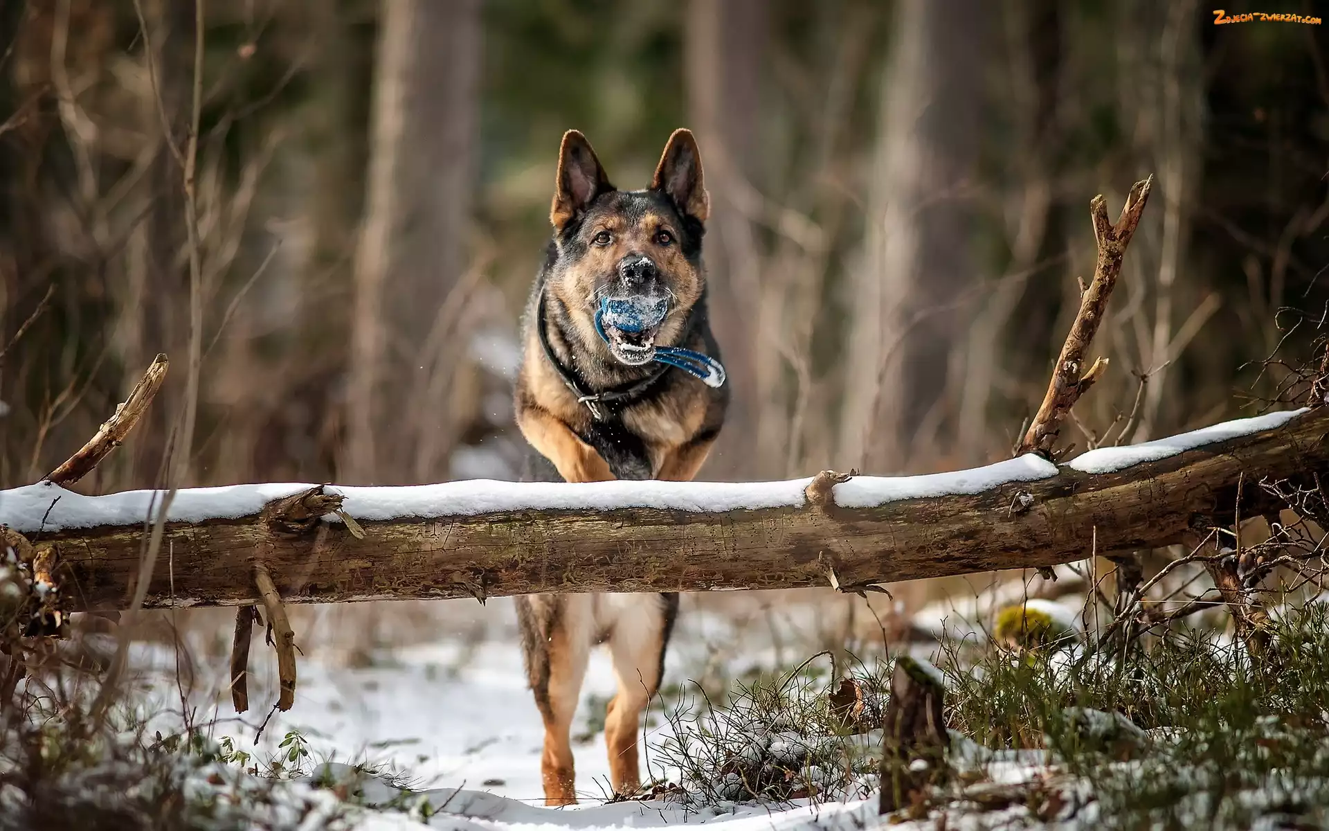 Zdjęcie: Zima, Las, Piłka, Pies, Zabawa
