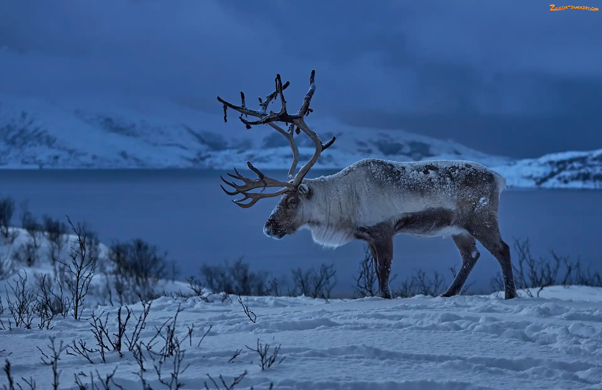 Zdjęcie: Śnieg, Renifer, Zima, Jezioro
