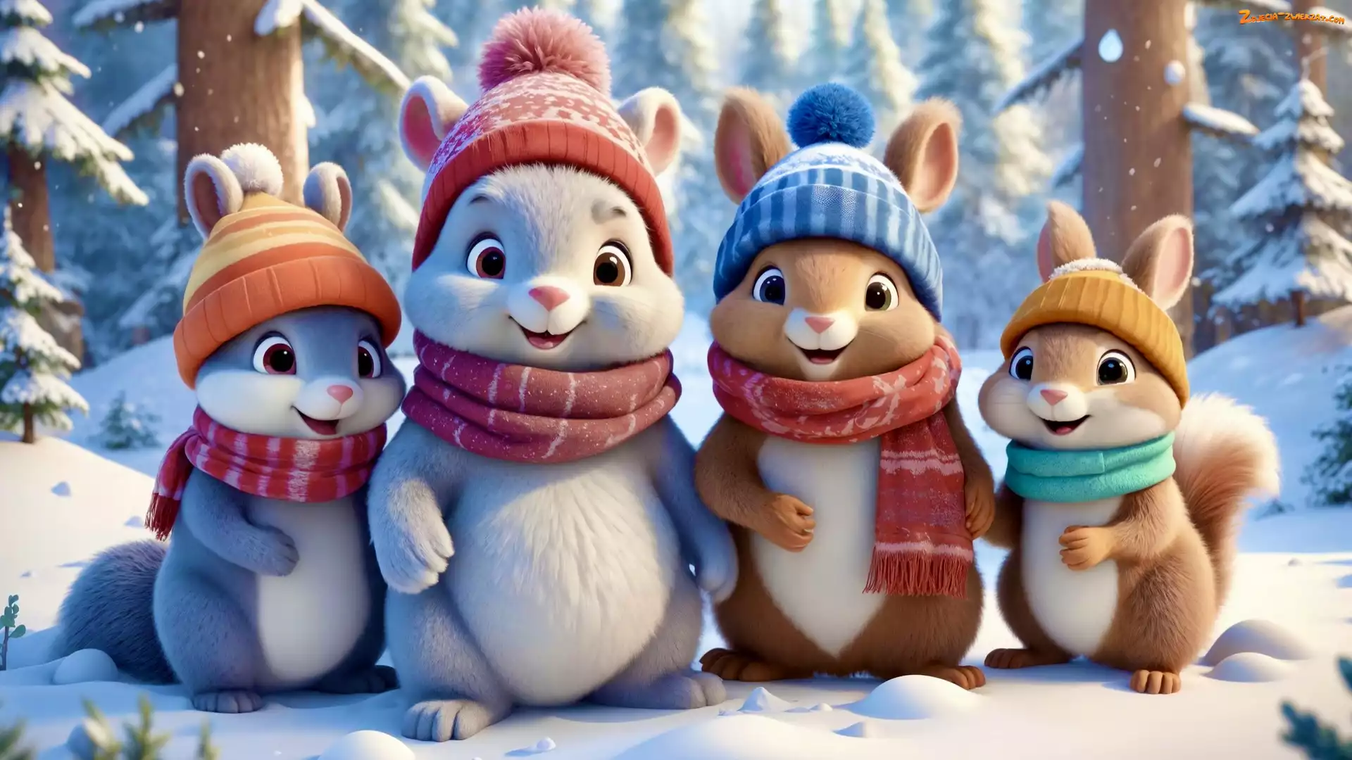Czapki, Zima, Szaliki, Wiewiórki, Grafika
