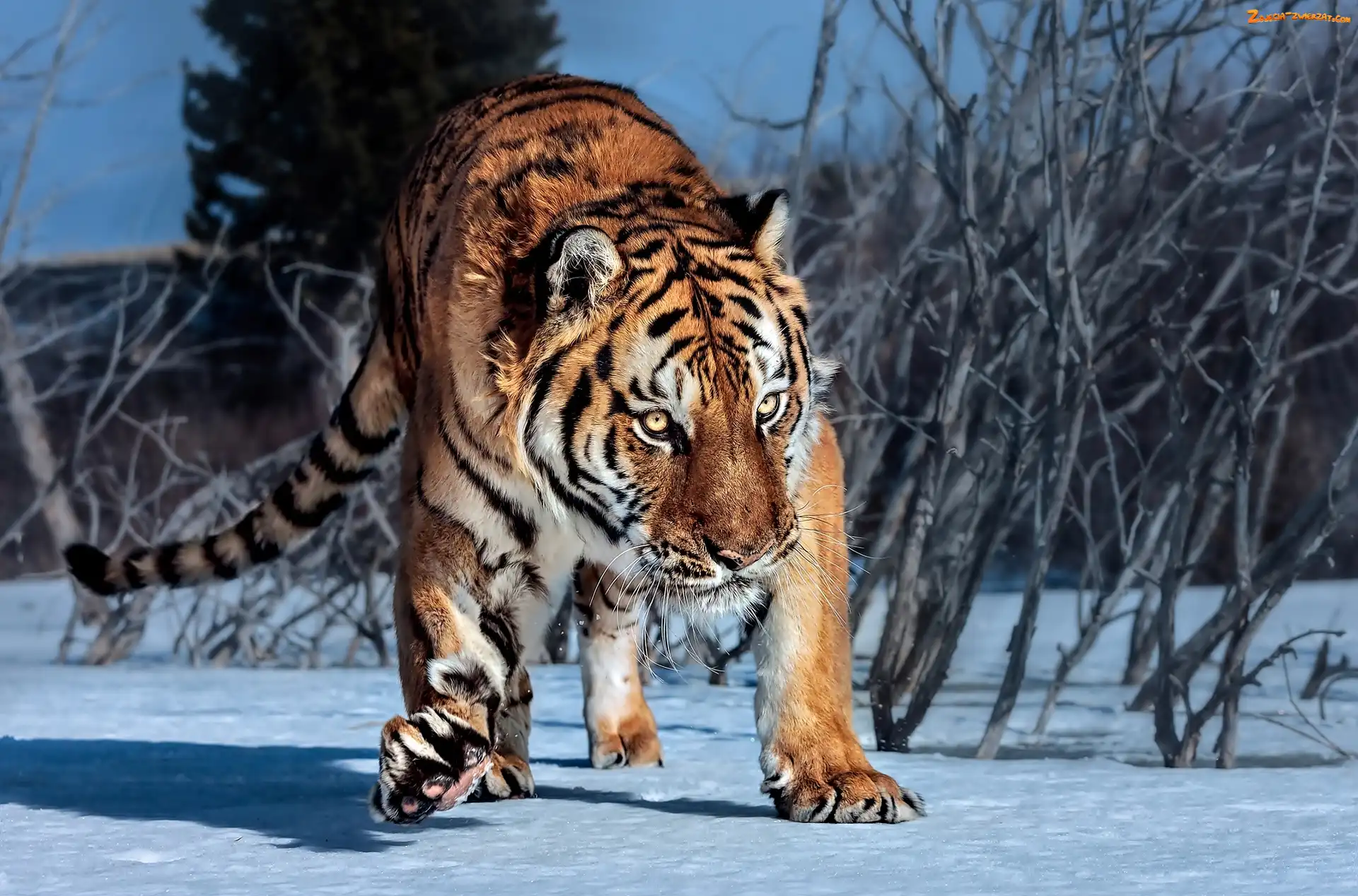 Zima, Krzaki, Tygrys, Śnieg