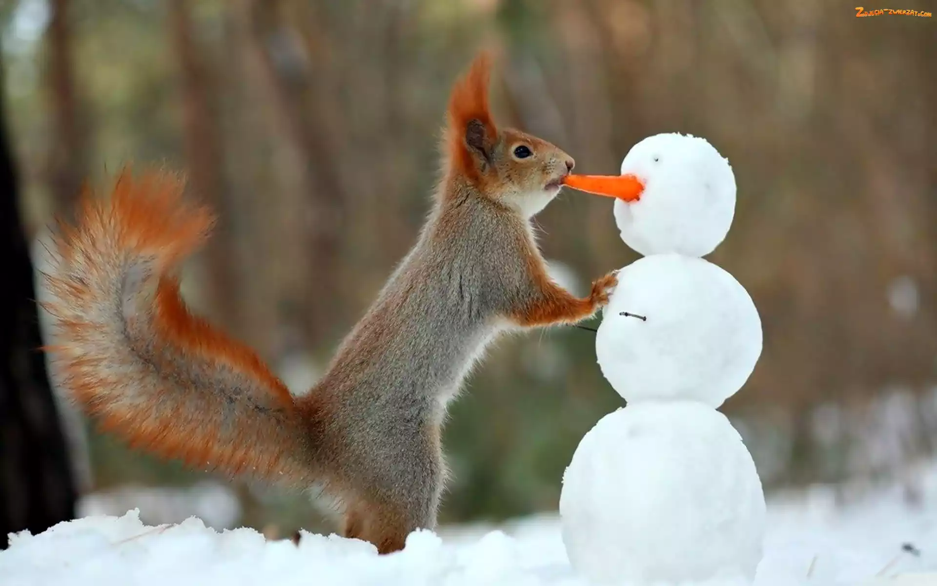 Zdjęcie: Śnieg, Wiewiórka, Zima, Bałwan