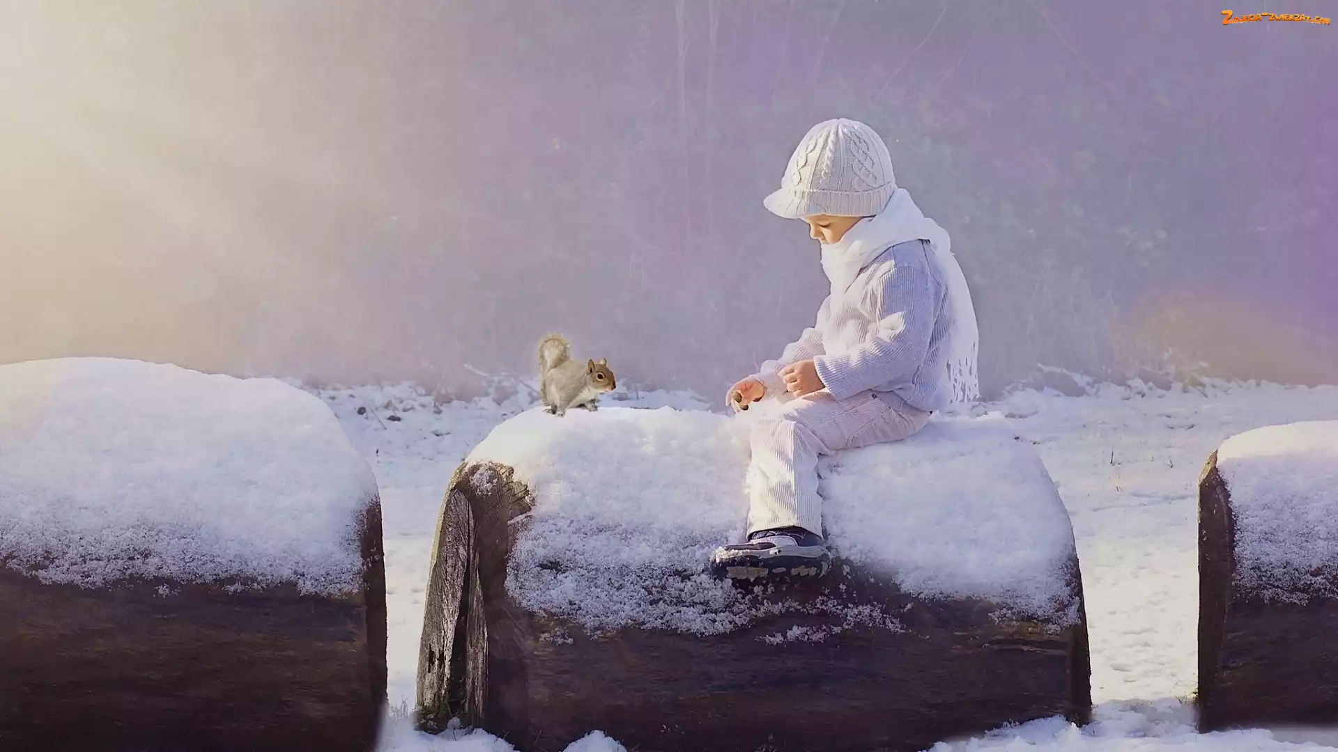 Zdjęcie: Śnieg, Wiewiórka, Zima, Dziecko