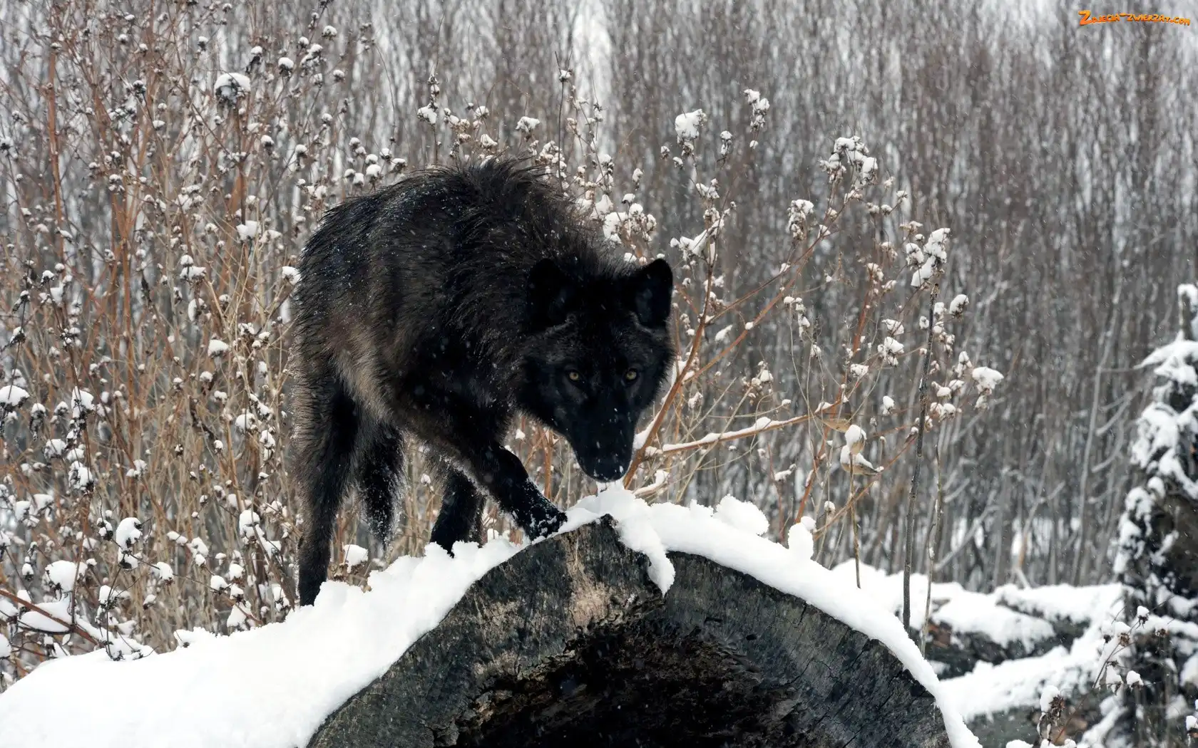 Zdjęcie: Śnieg, Wilk, Zima, Czarny