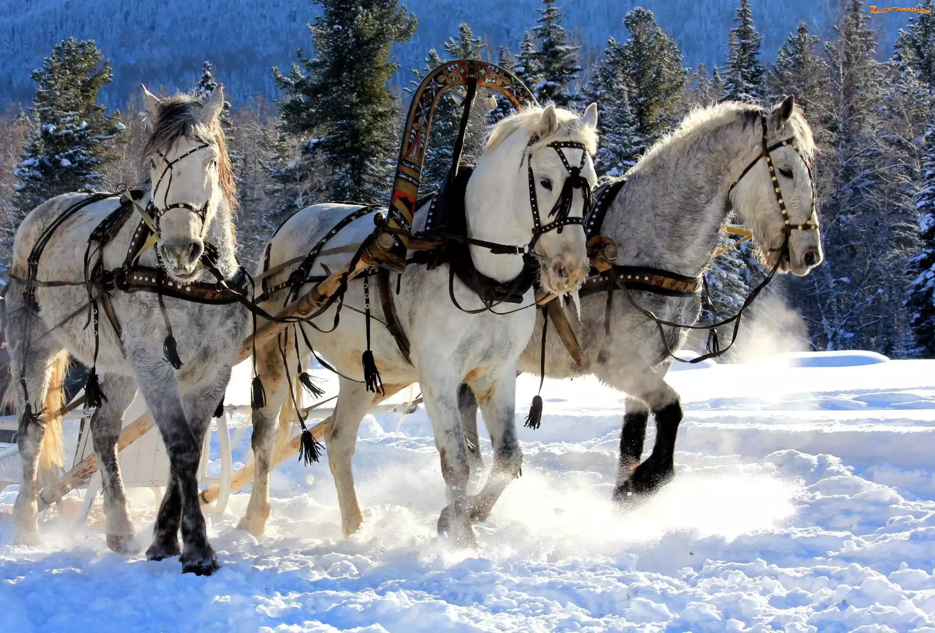 Śnieg, Zaprzęg, Zima, Konie