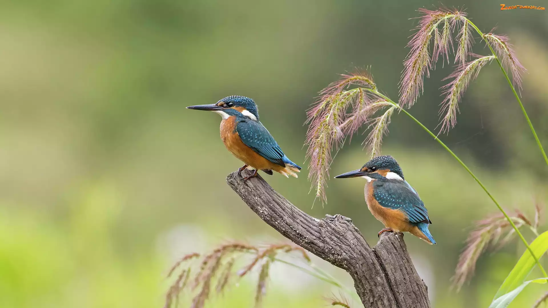 Zdjęcie: Trawy, Zimorodki, Dwa, Gałąź, Źdźbła, Ptaki, Sucha