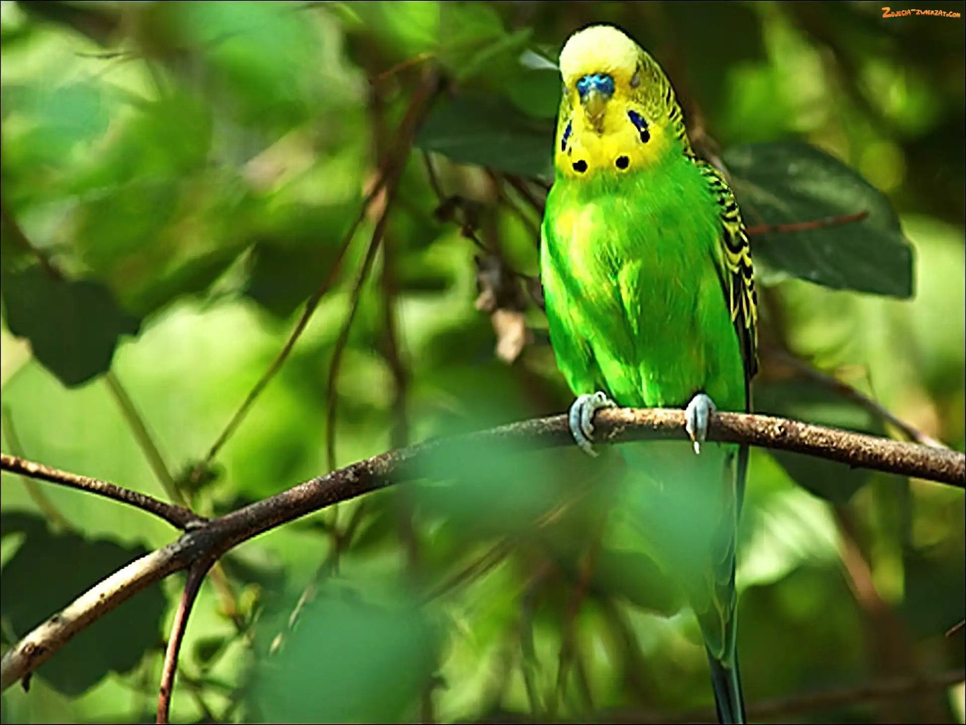 Zdjęcie: Żółta, Gałąź, Zielono, Papuga