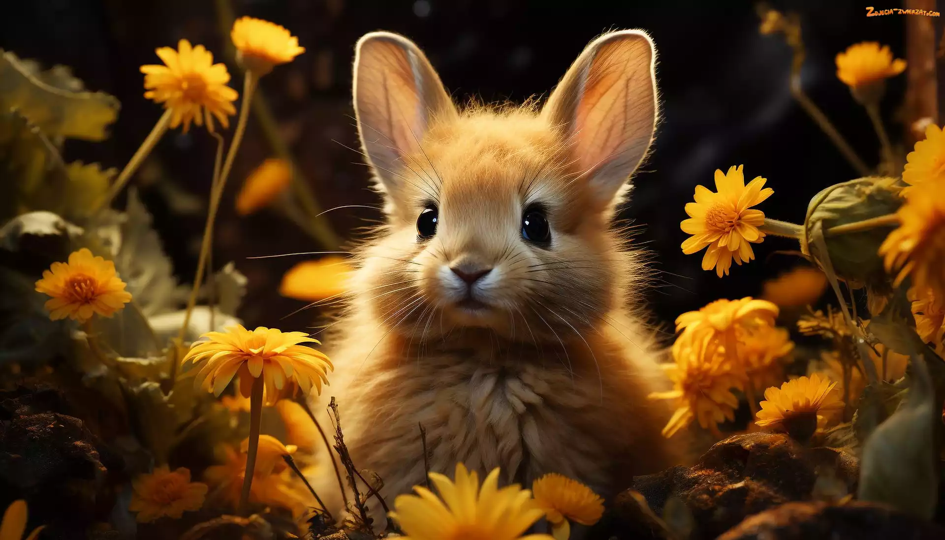 Kwiaty, Żółte, Rośliny, Królik, Spojrzenie