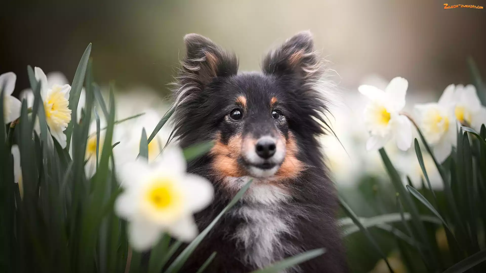 Narcyzy żonkile, Owczarek szkocki, Kwiaty