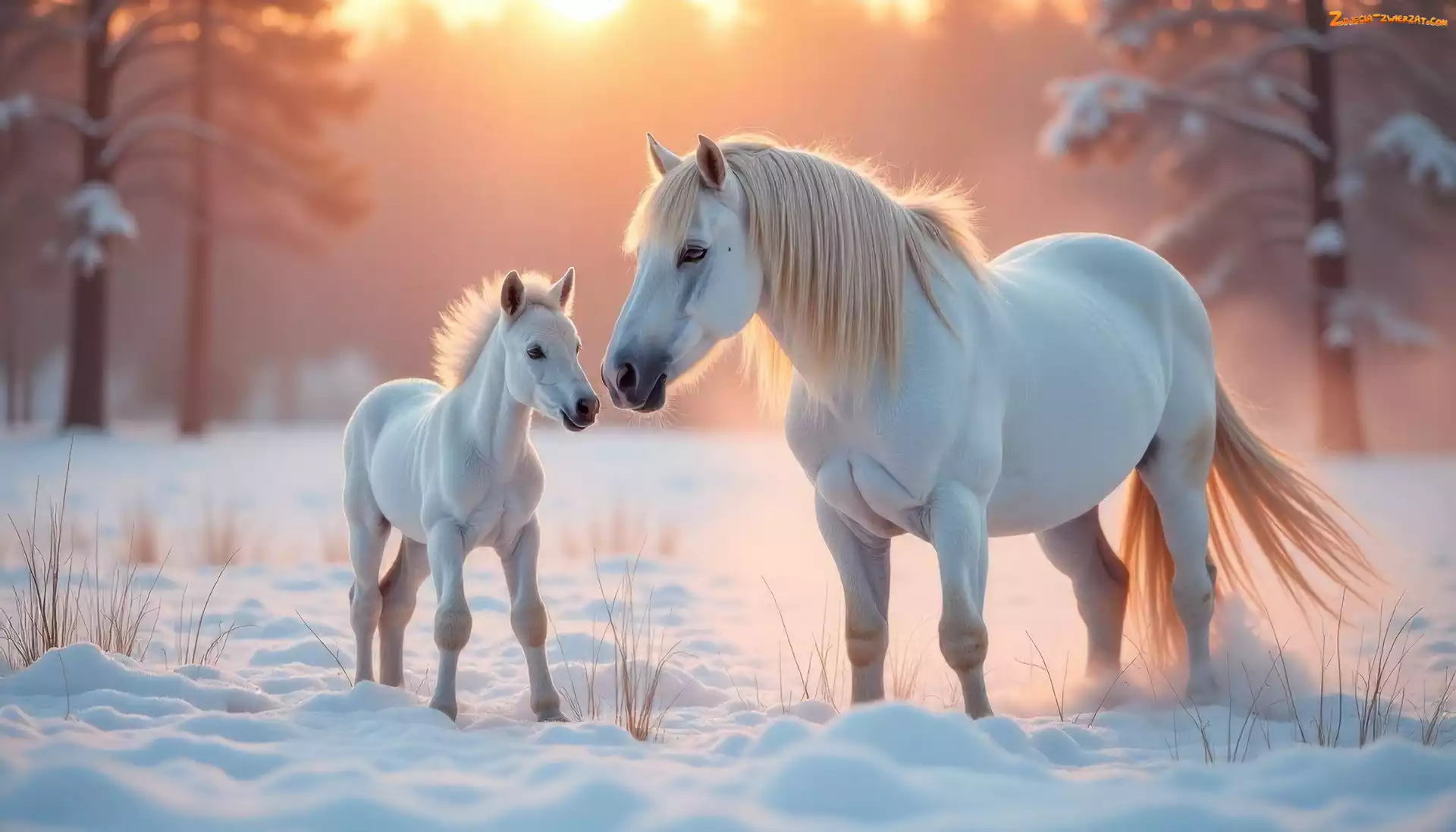 Zdjęcie: Konie, Źrebak, Grafika AI, Zima