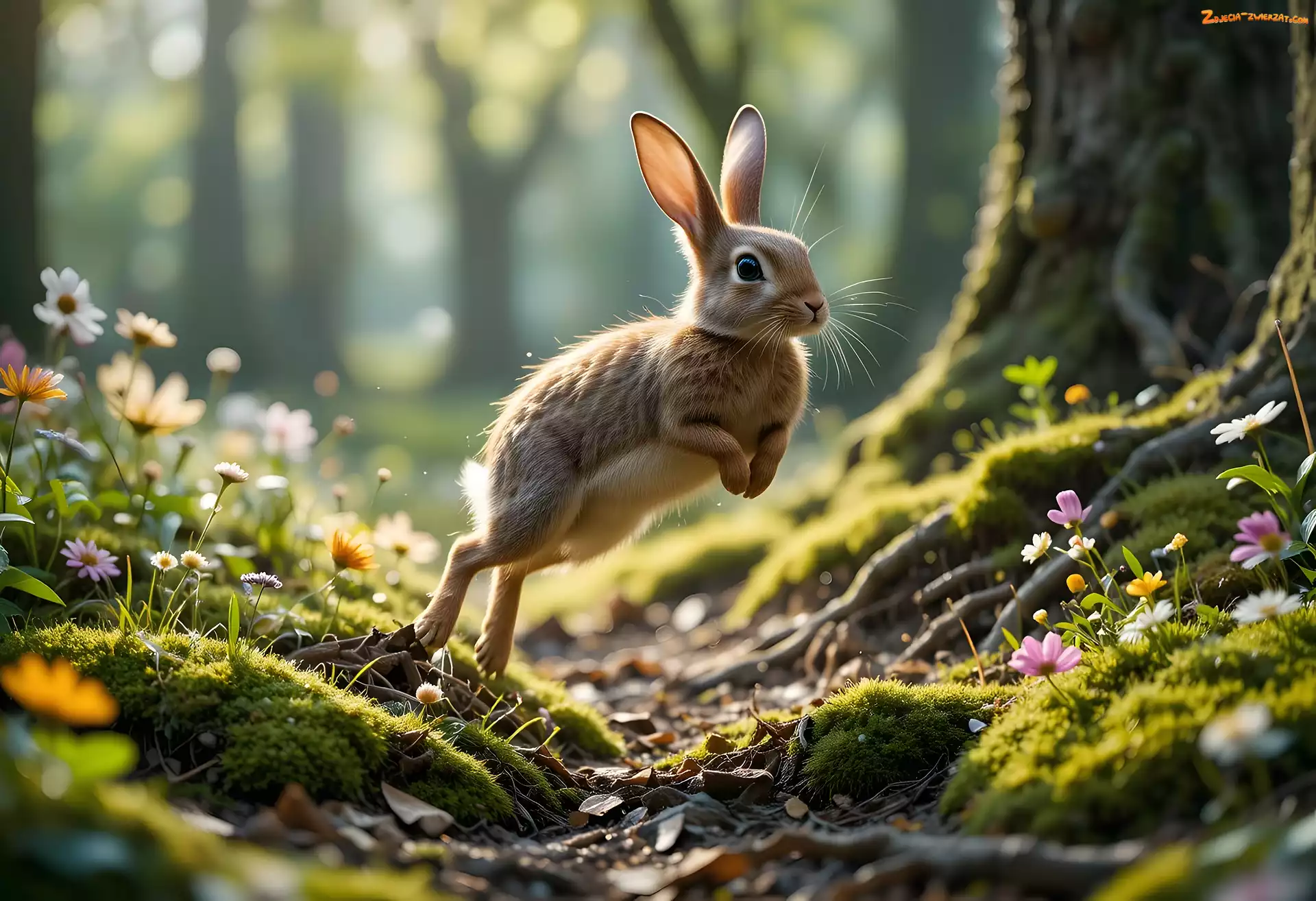 Zwierzę, Las, Ssak, Skakanie, Przyroda, Kwiatki, Królik, Natura, Uszy, Skoki